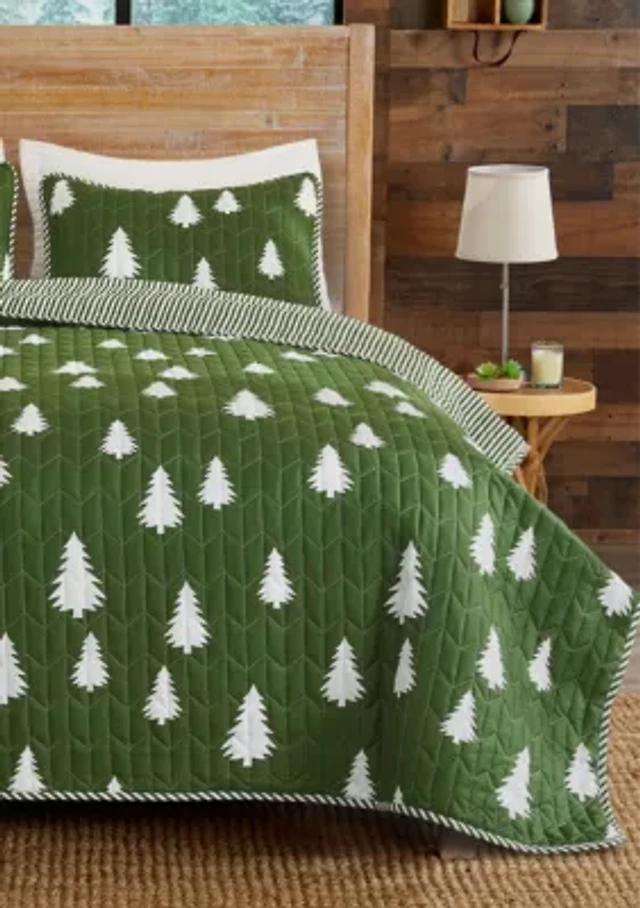 Linery & Co. Lodge Microfiber Quilt Set with Shams - Little trees