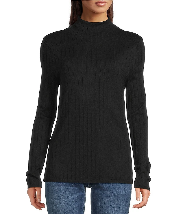 Charlie B. Ribbed Knit Mock Neck Long Sleeve Sweater