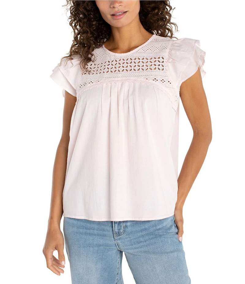 Liverpool Los Angeles Woven Voile Round Neck Flutter Sleeve Top in Franklin, TN