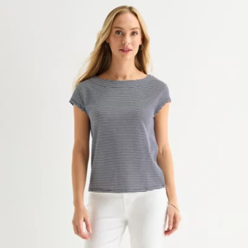 Liz Claiborne Womens Boat Neck Short Sleeve T-Shirt