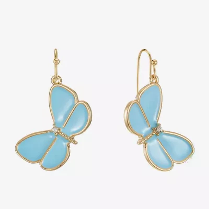 Liz Claiborne Womens Glass Butterfly Drop Earrings