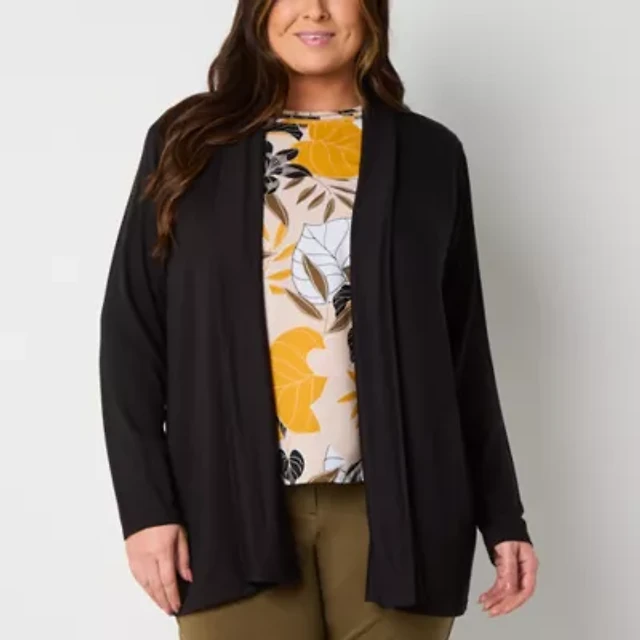 Liz Claiborne Womens Long Sleeve Open Front Plus Cardigan