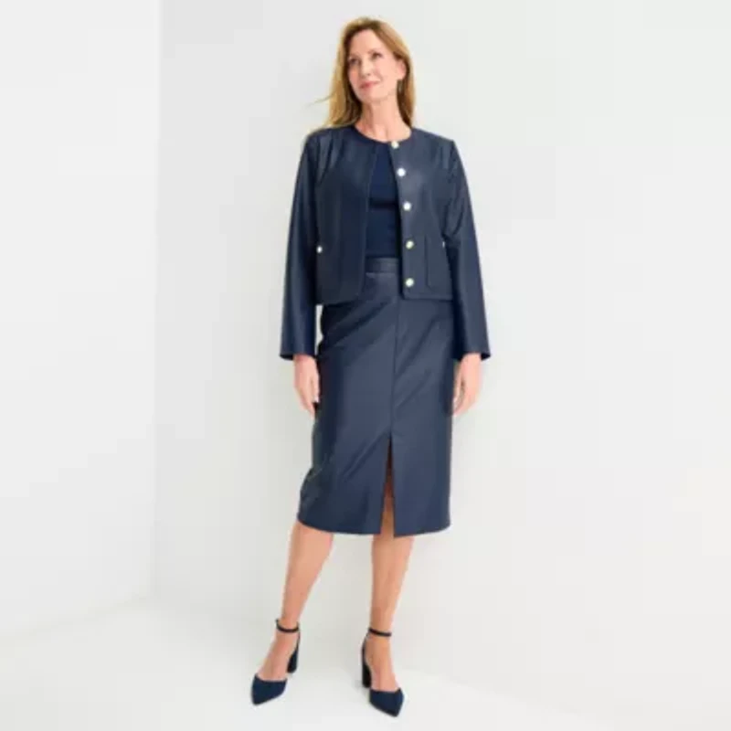 Liz Claiborne Womens Mid Rise Midi Faux Leather A-Line Skirt