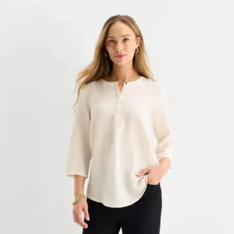 Liz Claiborne Womens Split Crew Neck 3/4 Sleeve Blouse