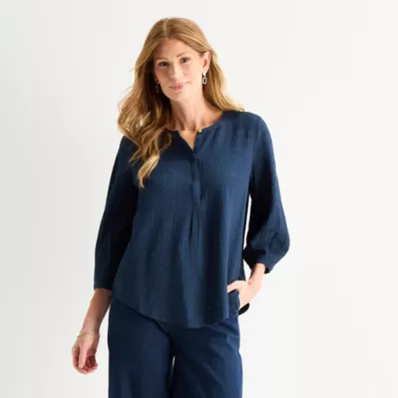 Liz Claiborne Womens Split Crew Neck 3/4 Sleeve Tunic Top