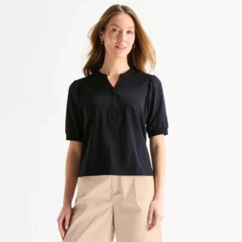 Liz Claiborne Womens Split Crew Neck Elbow Sleeve Blouse