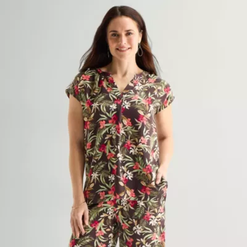 Liz Claiborne Womens Split Crew Neck Short Sleeve Satin Blouse