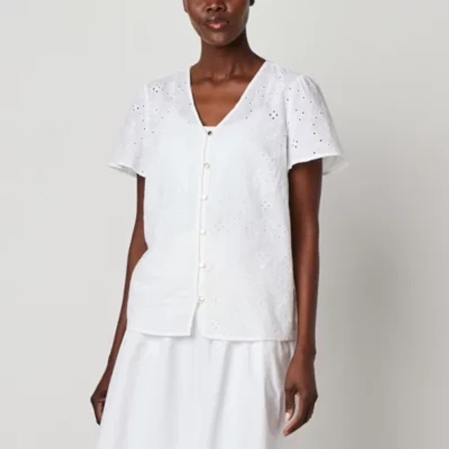 Liz Claiborne Womens Round Neck Short Sleeve Blouse
