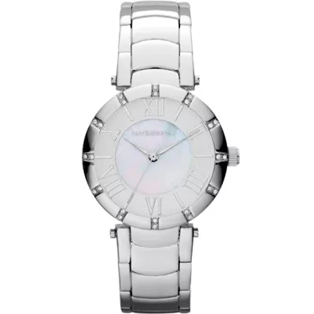 Liz Claiborne® Womens Silver-Tone Mother-of-Pearl Bracelet Watch