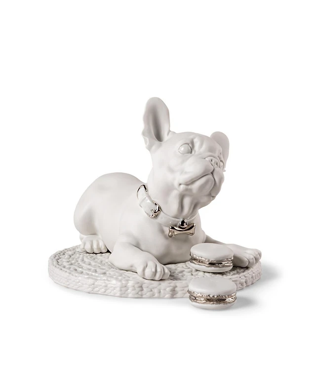 Lladro French Bulldog with Macarons Sculpture. Re-Deco
