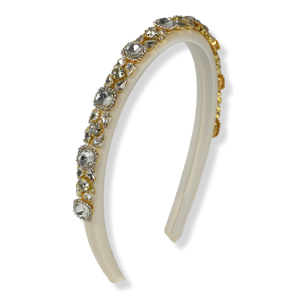 DIAMOND VEIL HEADBAND. Benefits: With a soft cream base featuring crystal gemstones framed in golden settings, this luxe piece delivers timeless elegance. : :