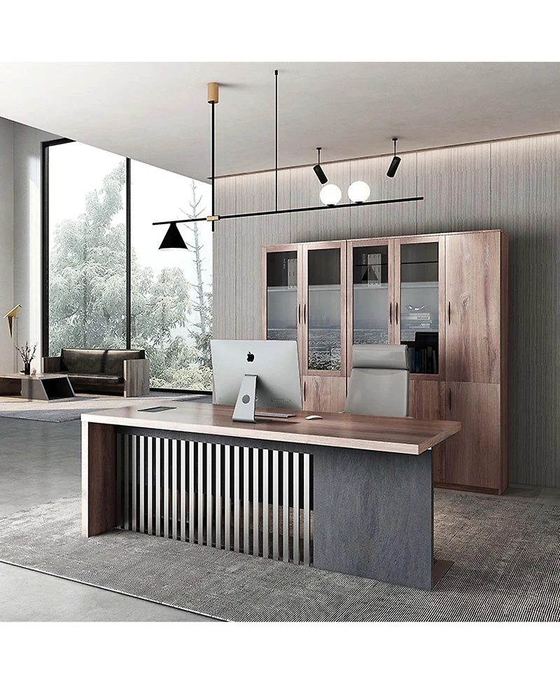 The executive desk measures62.99/ 70.87inch and the 1.97inch desktop is reinforced with built-in 1.5mm thick steel tubing for effective weight-bearing to effectively increase the overall stability of the desktop, preventing breakage and deformation, and is solid and reliable, withstanding up to 300 pounds of weight.