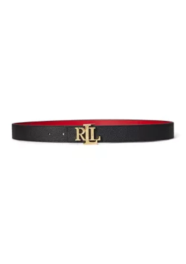 Lauren Ralph Women's Logo Reversible Pebbled Leather Belt