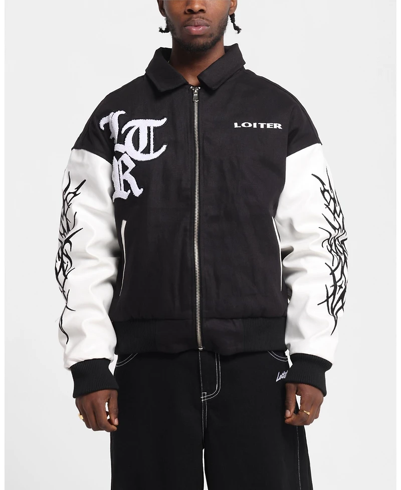 Stay warm while looking fresh and who better to heat up your wardrobe than Loiter! This jacket features embroidered graphics and chenille appliques that'll get you all the compliments, ribbed trims and hems add a little something extra, and the full zip closure finishes off the classic varsity jacket vibe.