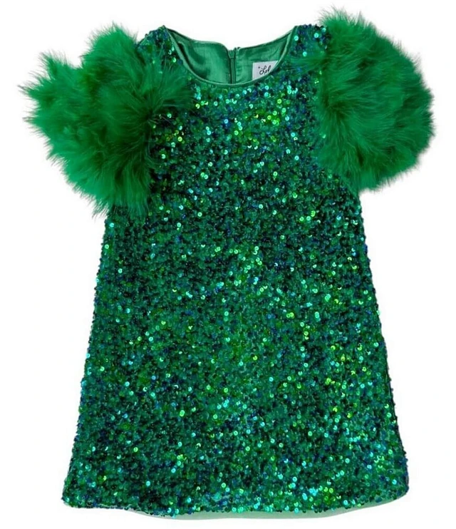 Lola + The Boys Little/Big Girls Jade Feather Party Dress