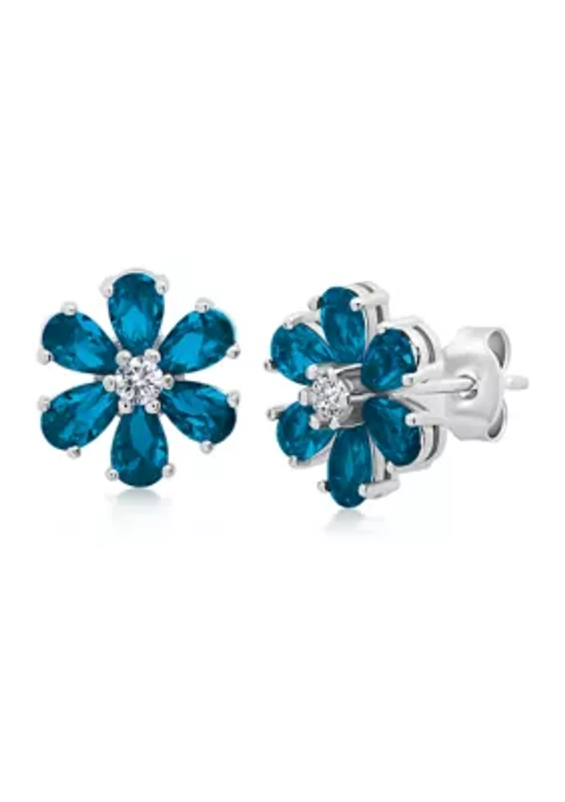 Londen Blue Topaz Flower Stud Earrings in 925 Sterling Silver in Franklin, TN