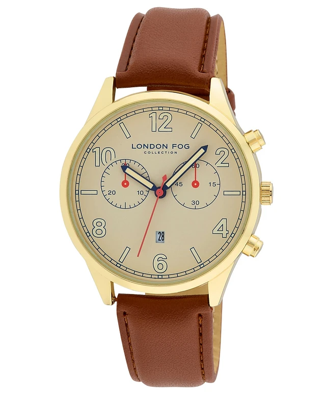 London Fog Multi Function Brown Faux Leather Watch 42mm