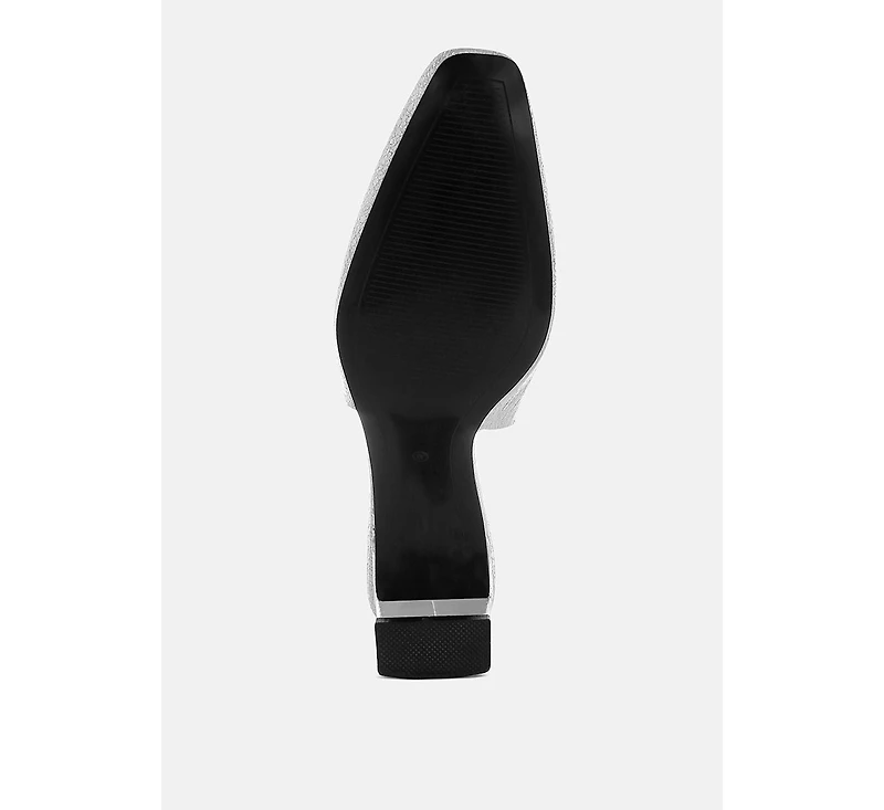 Meet a modern square-toe heels in metallic faux leather - an easy slingback design with comfort built in.Type: HeelsUpper Material: Crinkled Metallic Faux LeatherOuter Sole: RubberClosed Square ToeSleek Block HeelPin Buckle Slingback FasteningSoft Cushioned FootbedHeel Height: 2.5 inchesSH5805