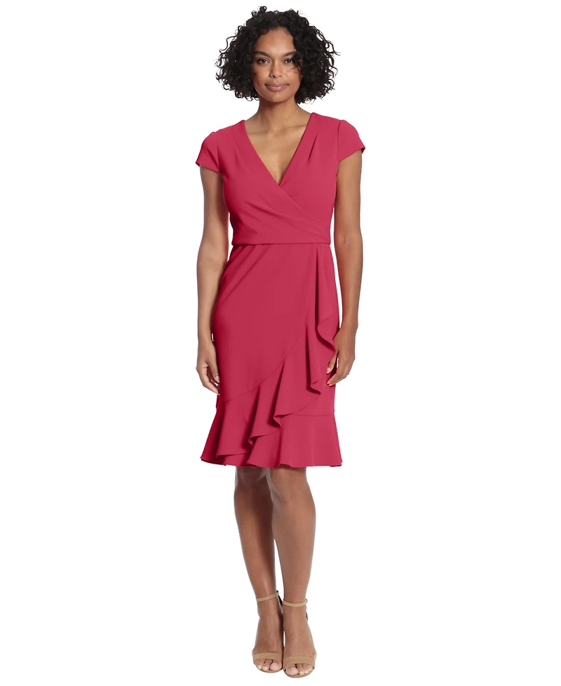A draped ruffle detail draws the eye on this ultra-flattering fit & flare dress by London Times.