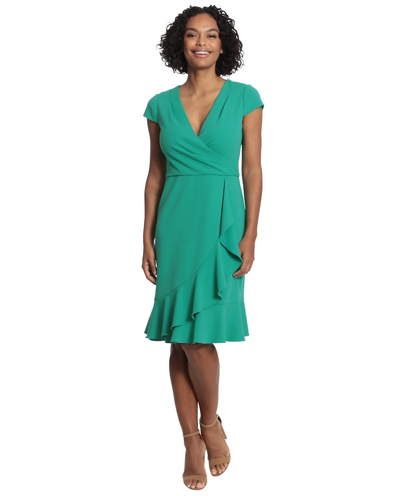 A draped ruffle detail draws the eye on this ultra-flattering fit & flare dress by London Times.