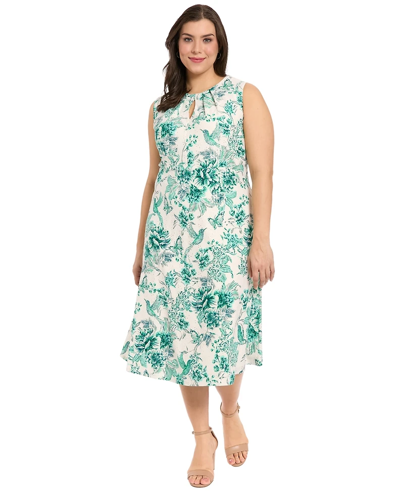 London Times Plus Sleeveless Keyhole Neck Midi Dress