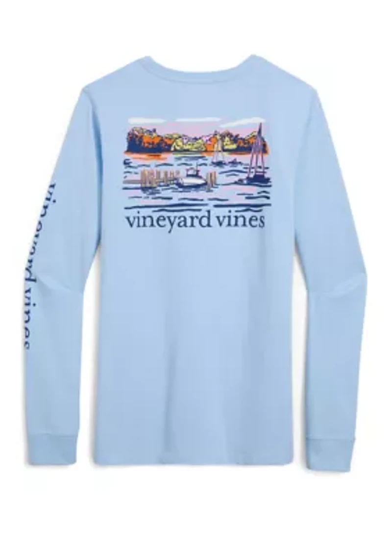 Made completely from cotton, this long-sleeved t-shirt from Vineyard Vines showcases a fresh and fun print on the back and chest pocket. Pullover Crew neck Long drop shoulder sleeves Unlined Imported Product Specifications 25.5" L from top of shoulder to bottom hem, based on a size small Material & Care 100% cotton Machine washable