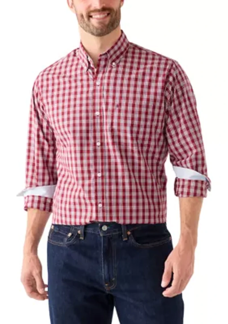 This stylish button-down shirt from IZOD is crafted with an easy-to-wear fabric with added stretch that allows it to move with you throughout the day. Button closure Button-down collar Long button-cuff sleeves Classic fit Imported Material & Care 72% cotton, 25% recycled polester, 3% spandex Machine washable