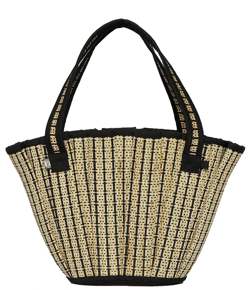 From Lorna Murray, this bag features: Tote bag Main: natural grass fibers, trim: cotton blend Handcrafted Sunray-pleated design Removable fabric drawstring interior Two handles Wide opening Care: treat any stains with a soft brush and mild detergent Irregularities in the fiber, weave and color are common and characteristic of the handmade process Approx. 9" H x 3.9" W x 6.3" L Straps approx. 5.9" L Imported.