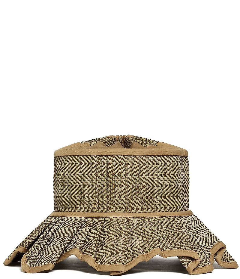 From Lorna Murray, this hat features: Pleated sun hat Weave: handcrafted from 100% natural grass fibers, trim: cotton blend Certified SPF 50+ Can be easily folded, making them compact for travel Ties at base of crown, can be styled or hidden within crown Handkerchief brim Approx. 2.7-4.3" brim Store flat with brim folded up Care: treat any stains with a soft brush and mild detergent Irregularities in the fiber, weave and color are common and characteristic of the handmade process Imported.