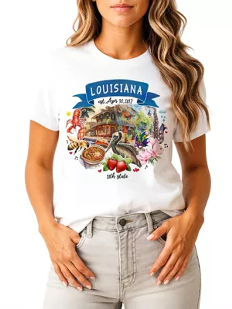 Louisiana State Themes and Landmarks Tee for History Travel Lovers in Franklin, TN