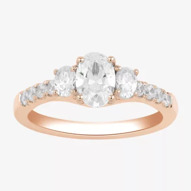 Love Lives Forever (H-I / Si2) Womens 1 1/2 CT. T.W. Lab Grown White Diamond 10K Gold Oval Side Stone 3-Stone Engagement Ring