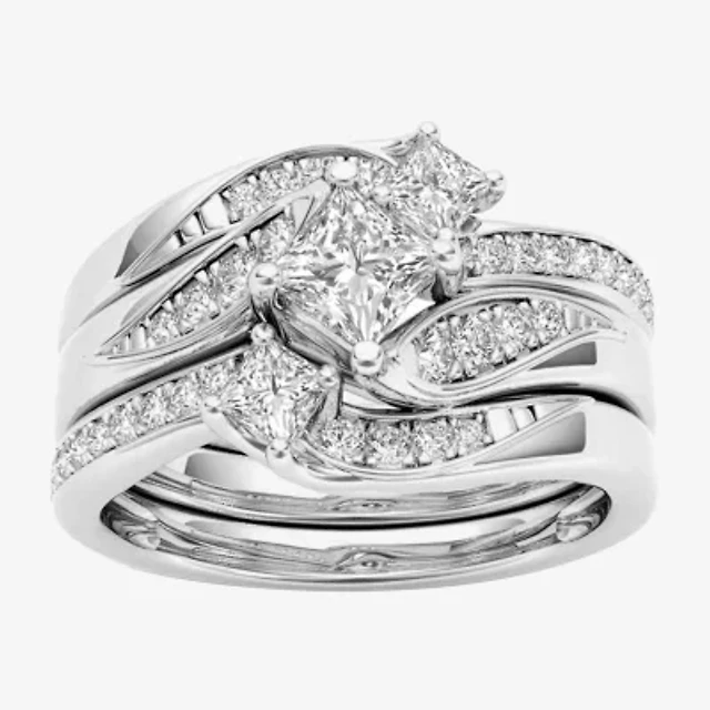 Love Lives Forever Womens 1 CT. T.W. Natural White Diamond 14K Gold 3-Stone Bypass Bridal Set