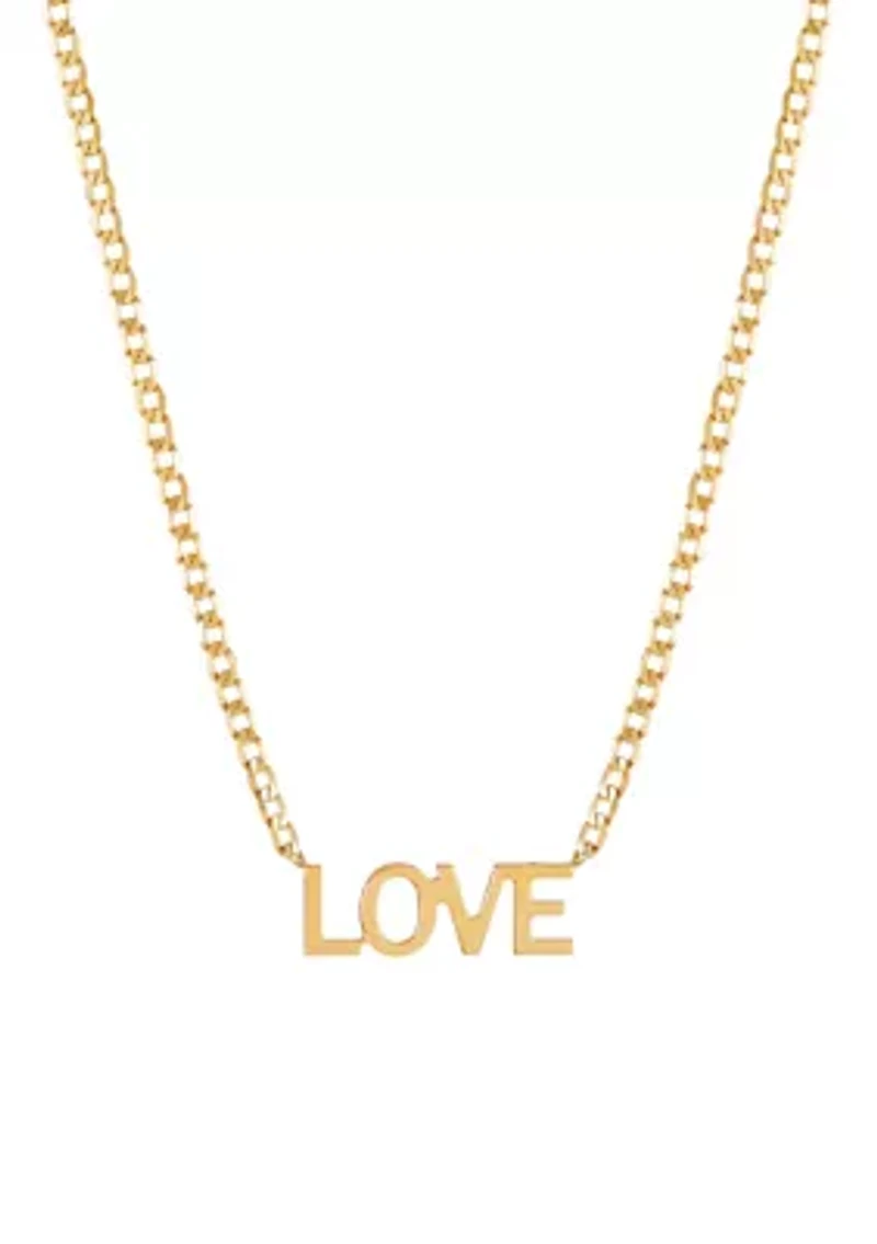 Made from polished 10K Yellow Gold, this exaggerated necklace features a curb chain and a pendant reading "LOVE." Fish hook closure Polished finish Imported Belk Exclusive Product Specifications 17 in Length Material & Care 10K Yellow Gold Clean with a soft cloth