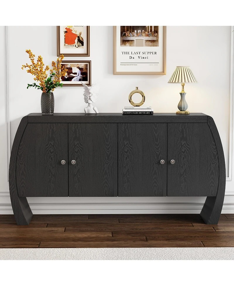 Step into timeless elegance with our Four-Door Storage Cabinet—a masterpiece that marries vintage charm with modern functionality. Each cabinet is meticulously crafted from high-quality ash wood, showcasing the natural and delicate grain patterns that add warmth and texture to any space. The antique brass handles, carefully aged through a special process, exude the charm of time-worn elegance while ensuring smooth operation and easy access. The unique inward-curving rounded arc legs add a touch of softness and dynamism, embodying the craftsmanship and meticulous effort of skilled artisans. Built on a durable medium-density fiberboard (Mdf) base, this cabinet ensures long-lasting durability, making it a reliable piece of furniture that can withstand everyday use while maintaining its refined appearance. Whether placed in the living room, dining room, or hallway, this storage cabinet enhances the beauty of your home.