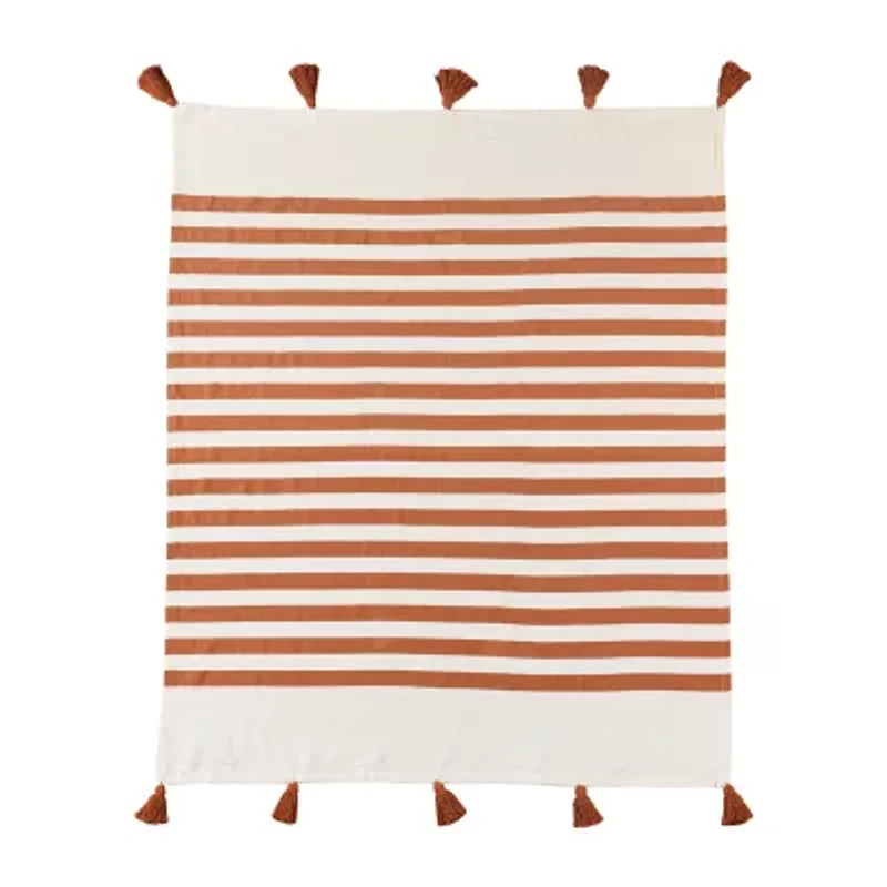 Come get cozy with this decadent cotton throw blanket. Featuring a classic, bold stripe in a vintage wash for a comfy, broken-in feel; with self-binding edges for durability, and tassels for a little extra flair. This blanket is crafted in India from all-natural, organic cotton, which provides ultimate breathability and comfort that you will enjoy year-round.