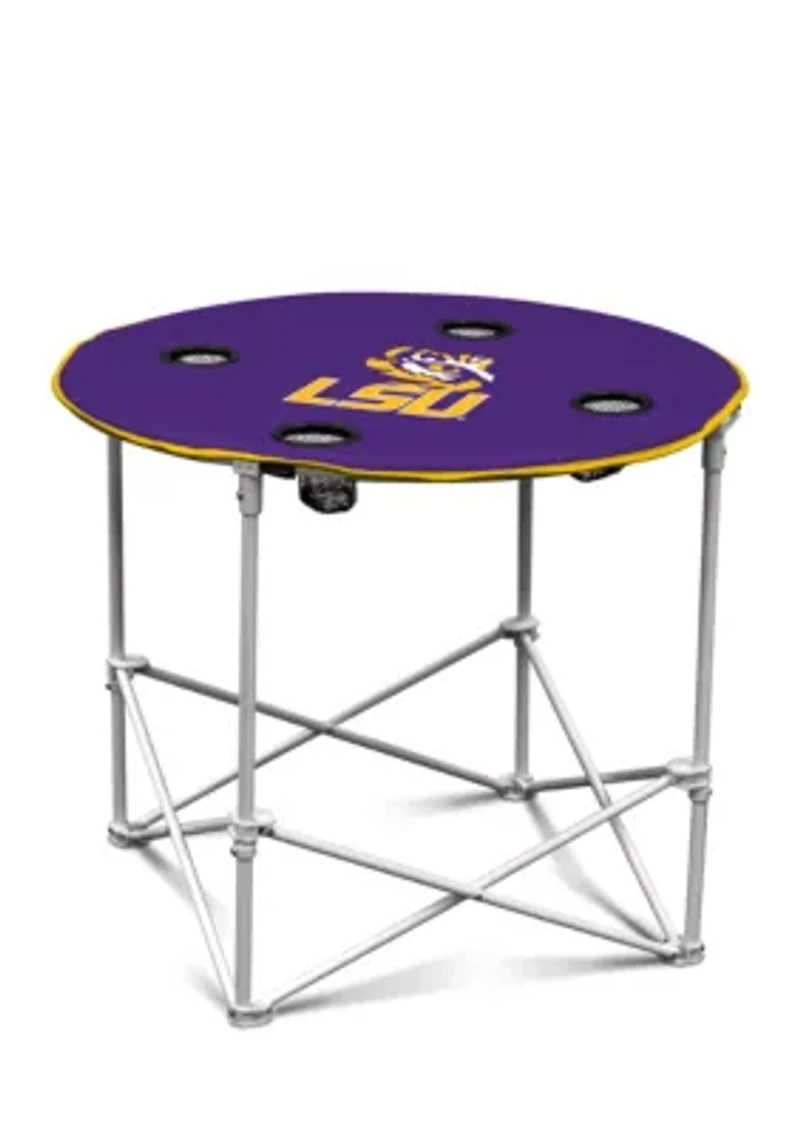 Round Table is a necessity for your next tailgate or outdoor event. It features a large logo in the center with coordinating trim. With a sturdy surface and four cup holders, it is ideal for a food spread or gathering around with friends. Pair with Logo Brands chairs for a first-class setup. The table top removes from the base and folds in half for storage. Transport it to and fro in the matching zip-up bag with shoulder strap. Dimensions: 28.5 x 28.5 x 24.25 2 2-piece set Warranty available Imported Product Specifications 28.75"x15"x3.5" Material & Care Stainless Steel Spot clean only