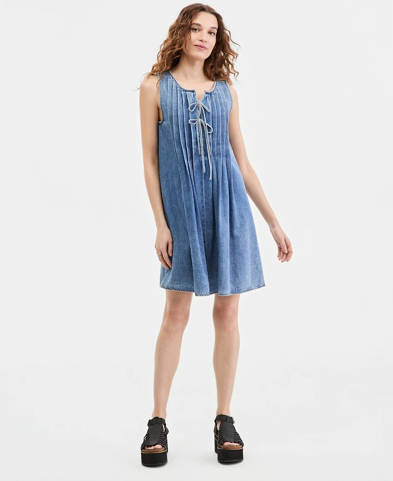 Lucky Brand Women's Cotton Pleated Denim Mini Dress