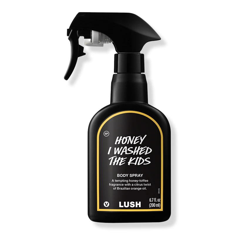 HNY I WASHED THE KIDS BODY SPRAY 6.7FLOZ. Benefits: This sweet caramel toffee scent has been a fan fave at Lush for decades.. Bring it with you to sweeten you scent on the go!. Features: This self-preserving product is formulated to stay fresh and effective without added synthetic preservatives.. Key Ingredients: Bergamot and Brazilian orange oils are citrusy and uplifting.. Notes of buttery toffee and warm vanilla create a cozy, nostalgic scent..