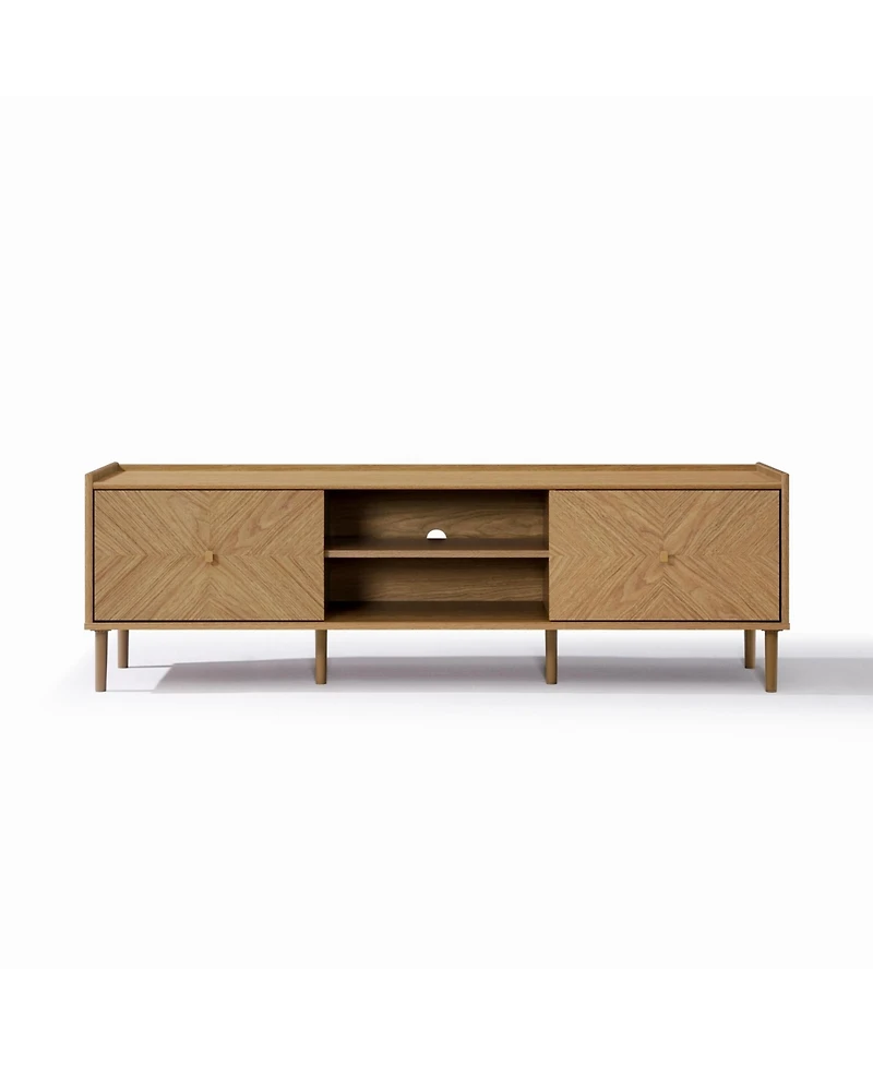 Calm lines and a summer oak make this 63"" piece an easy focal point for your living room. Designed as a versatile Tv stand, it also performs as a media console or entertainment center. The raised-edge tray top keeps decor, speakers, and remotes from falling off, while the parquet-pattern front doors add artisanal texture. The middle part includes a removable shelf for consoles or books. A rear 5cm cord-management grommet keeps cables tidy. Practical and serene, this Tv stand and console with storage brings a modern–Japandi character to any space and doubles beautifully as a display cabinet.