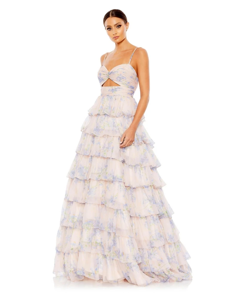 Mac Duggal Women's Floral Cut Out Ruffle Tiered Gown