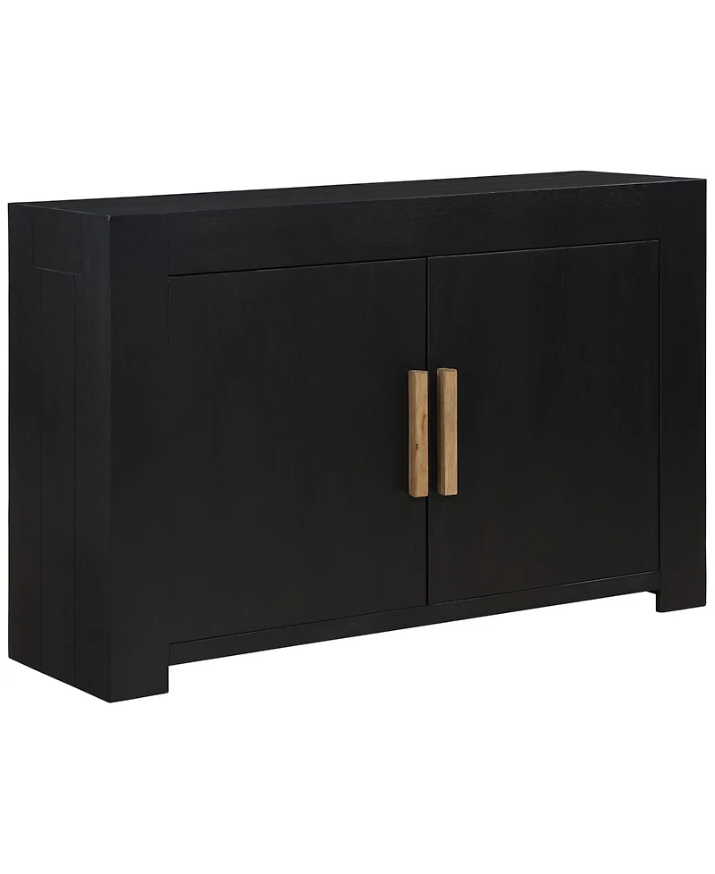 The Macai server offers ample storage for all your dining essentials. With Craftsman styling, clean lines, and substantial proportions, it exudes a primitive design aesthetic. Two adjustable shelves enable you to customize your space precisely to your needs, while the contrasting pulls and interior facilitate mixing and matching with other black and driftwood dining items, especially those in the Macai collection.