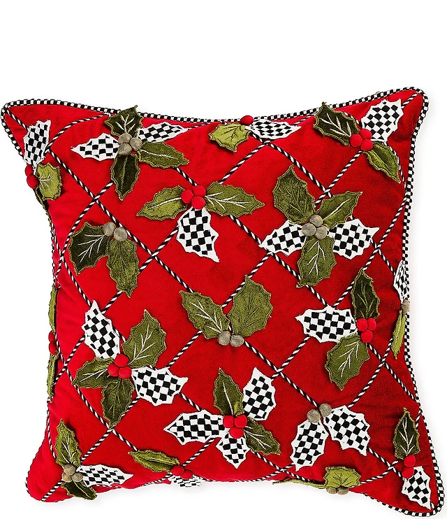 MacKenzie-Childs Holiday Collection Holly Lattice Throw Square Pillow