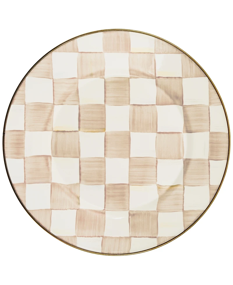 A stylish place setting starts with this dinner plate from Mackenzie-Childs. Hand-painted in a Mocha Check motif, it's perfect for pairing with other pieces from the collection or coordinating with solid-color dinnerware.