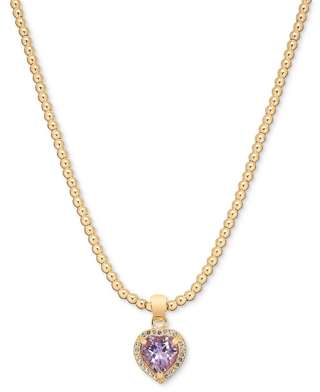 Macy's Amethyst (1 ct. t.w.) & White Topaz (1/4 ct. t.w.) Heart Bead Link 18" Pendant Necklace in 14k Gold-Plated Sterling Silver