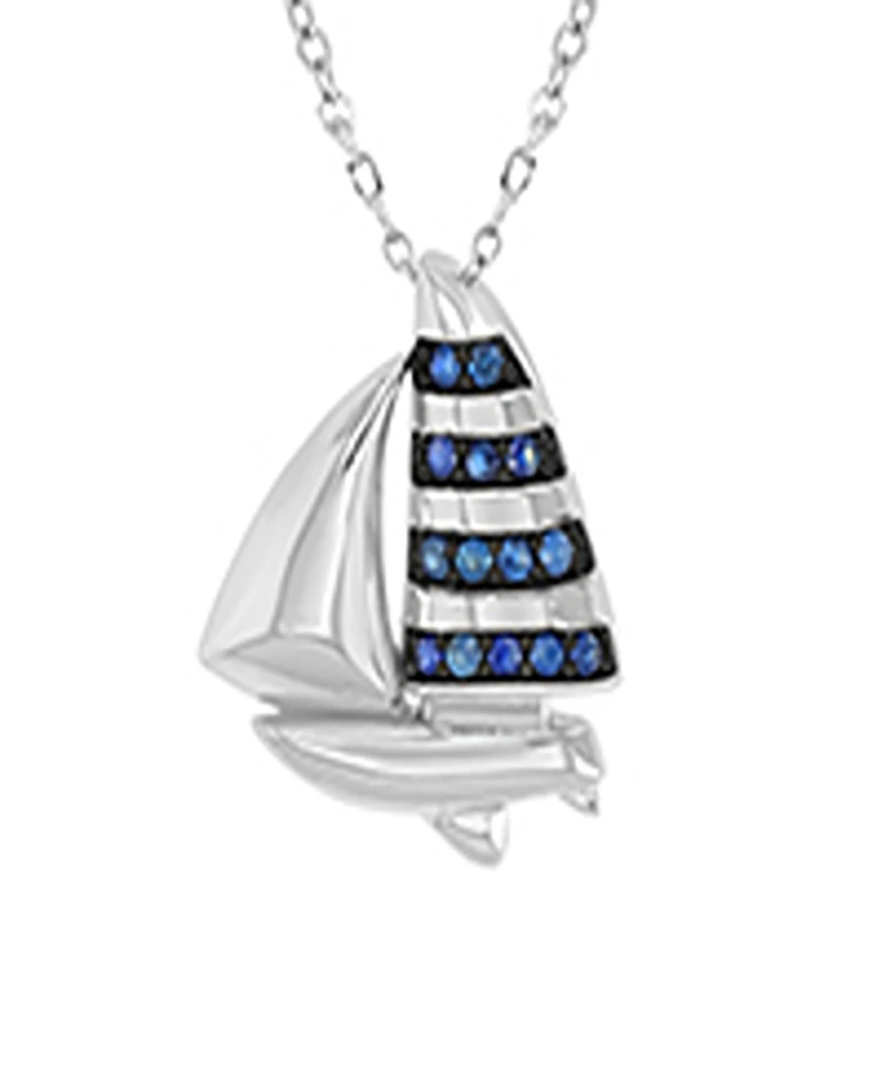 Macy's Created Blue Sapphire Ship Necklace in Rhodium Over Sterling Silver