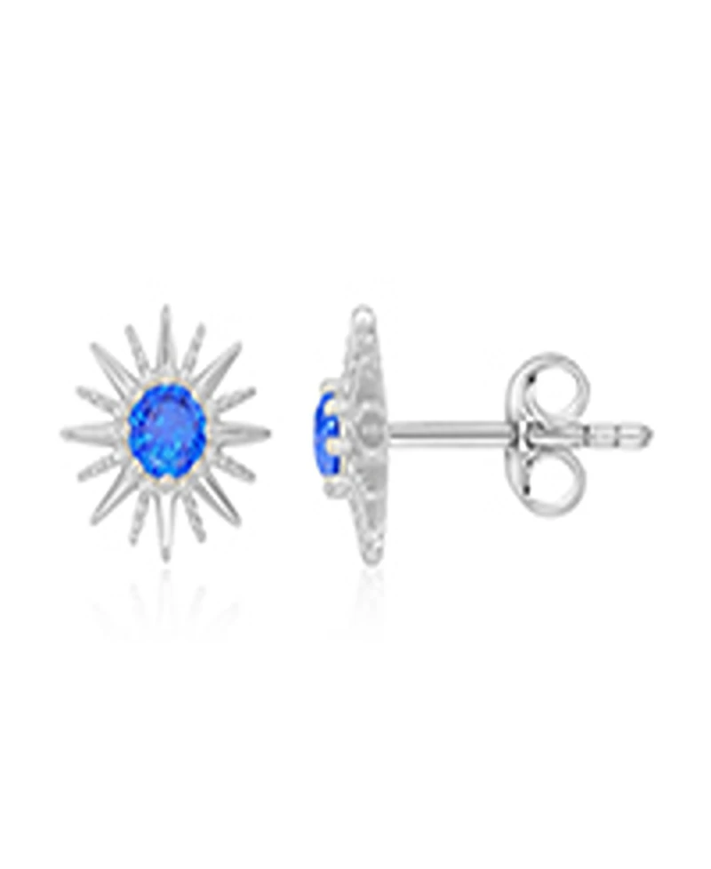 Macy's Created Blue Spinel Starburst Stud Earrings in Rhodium Over Sterling Silver