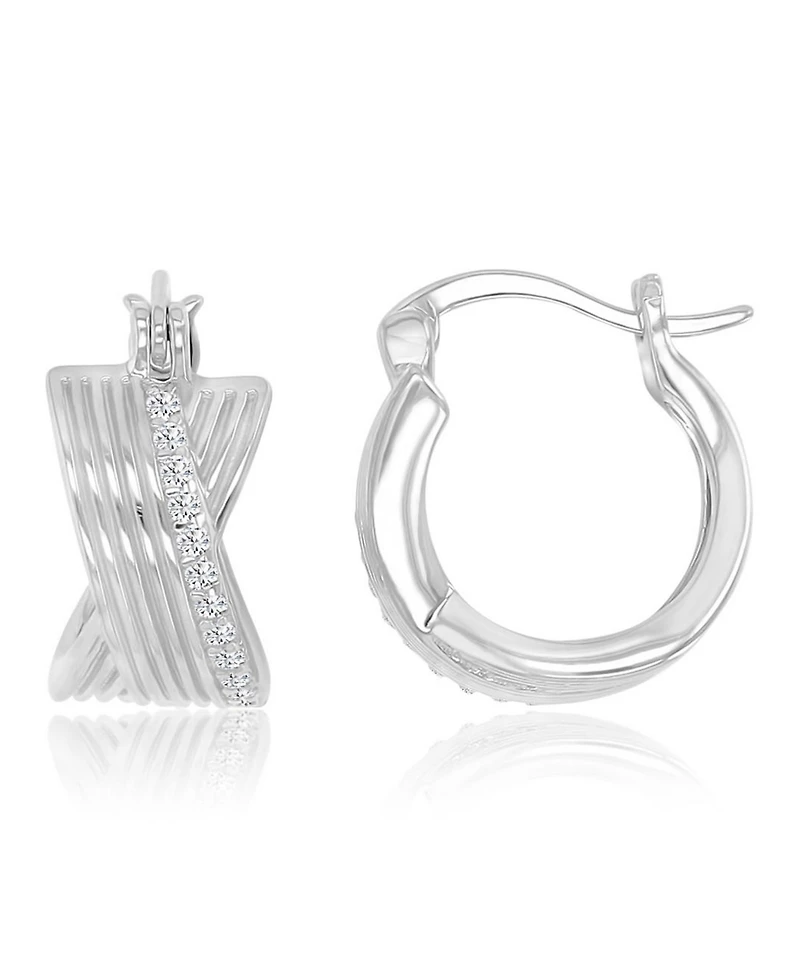 Macy's Cubic Zirconia (0.28 ct. t.w.) Rhodium Over Sterling Silver Crossover Huggie Earrings (Also 14k Yellow Gold Silver)