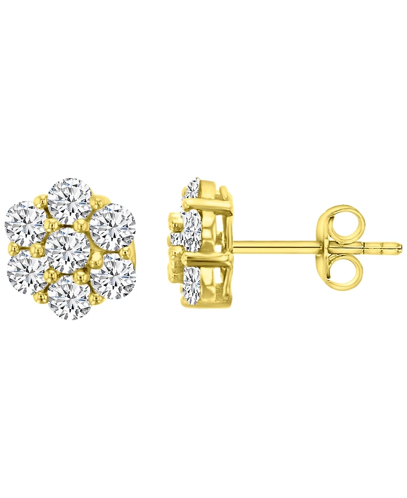 Bold sparkle comes through in these stud earrings from Macy's, showcasing a micropave cluster design set in 14k yellow gold. A butterfly back closure ensures secure, comfortable wear.