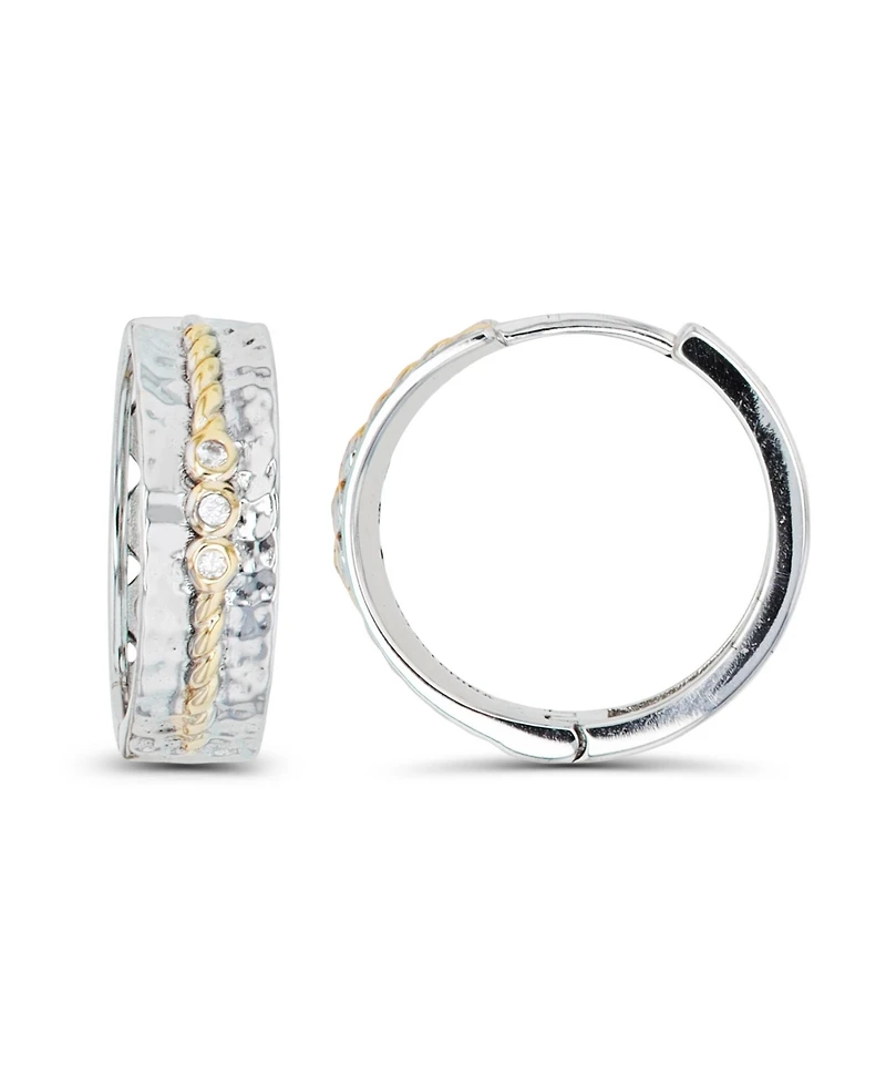 Macy's Cubic Zirconia Two-Tone Hammered and Rope Design Center Hoop Earrings
