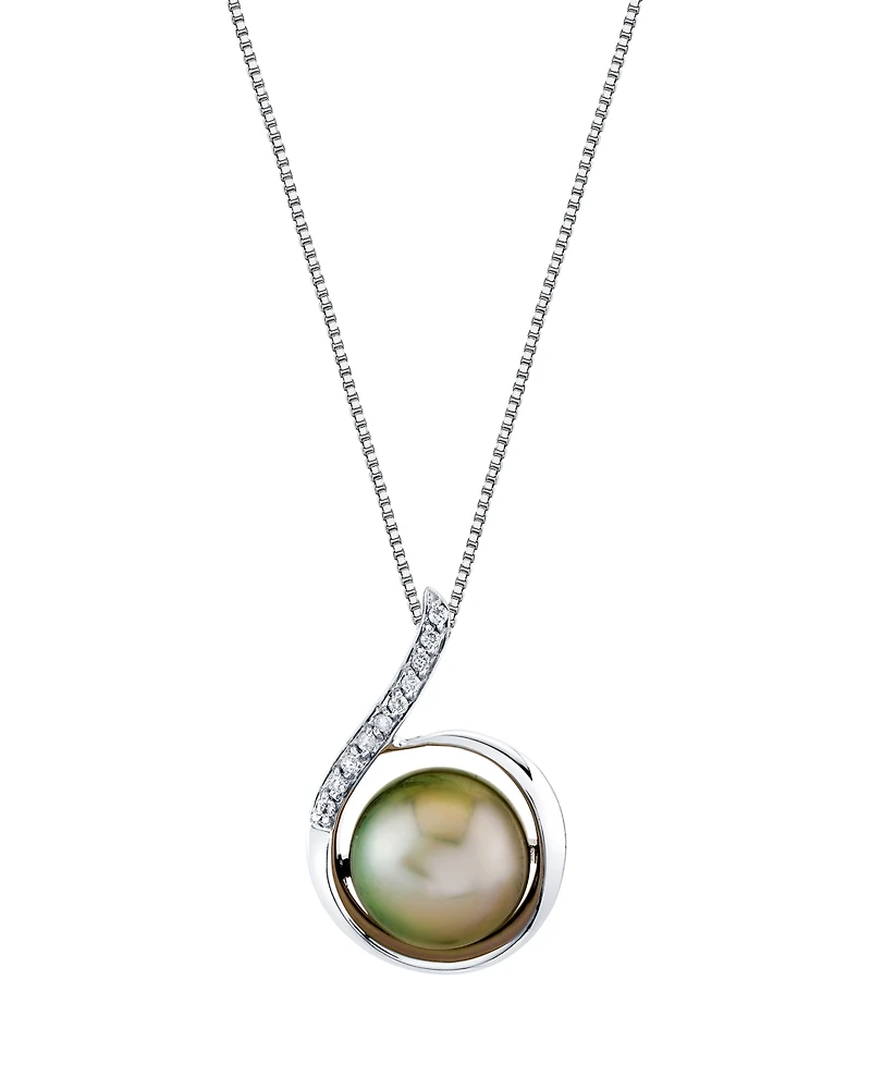 Quiet sophistication shines in this Macy's pendant necklace, centered with a cultured Tahitian pearl accented by diamonds. Set in sterling silver, the design is finished with a box chain and a secure spring ring clasp for refined, everyday wearability.